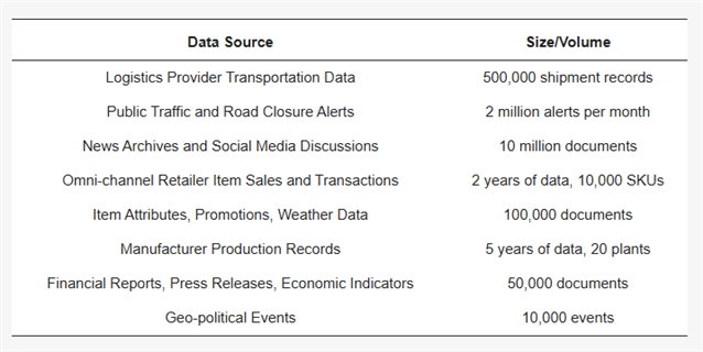 表 1. 供应链优化数据源的规模
