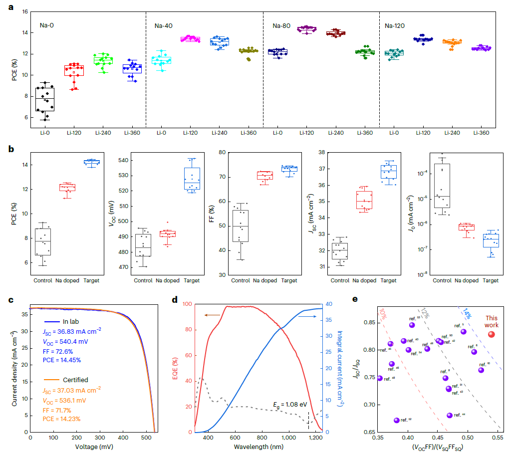 图2:柔性CZTSSe太阳能电池效率突破14%。