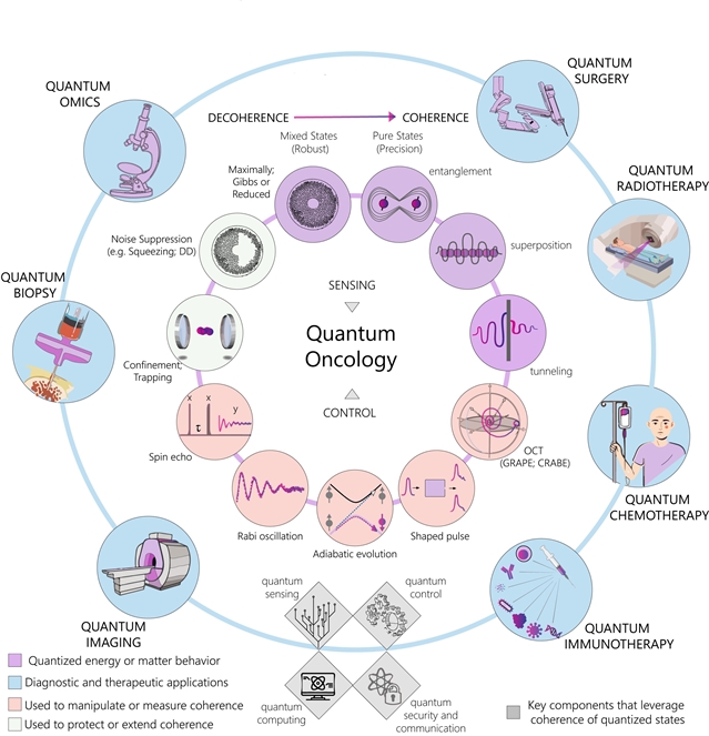 简单来说,量子肿瘤学就是将量子力学的基本原理(如叠加、纠缠、隧穿等)应用于癌症的诊断、治疗和药物研发中。