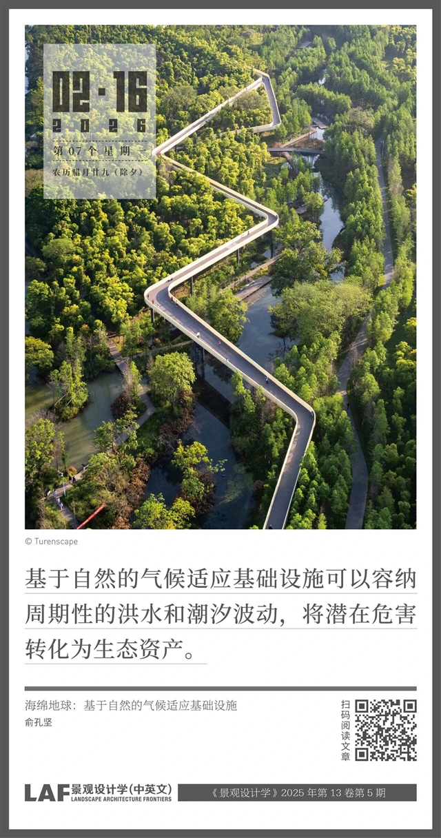 随着气候变化影响的加剧及相关灾害的频繁发生,以减少碳排放为核心的气候减缓策略和依赖钢筋水泥等灰色基础设施的适应策略弊端日益显现。本文介绍了“海绵地球”的气候韧性范式——一种以景观为基础、遵循水文逻辑并基于自然的气候适应与生态修复框架。文章综合了数十年的研究成果与全球600余个实践案例,系统反思了灰色基础设施的局限性,指出其在历史、文化与物质层面与生态原则的背离。相较之下,“海绵地球”模式围绕三大核心策略展开——源头留住雨水、过程减缓水流、末端与水为友——从而将城乡环境重新构想为基于水的适应性生态系统,具备缓解洪水、干旱灾害及应对海平面上升和城市热岛效应等问题的能力,并能够促进生境的自我修复。通过来自中国、泰国及其他国家和地区的案例,文章展示了如何运用模块化设计、本土材料与基于GIS的精细化技术建构深层次的生态基础设施。最后,本文提出一个面向地球的设计框架,将科学知识、文化遗产与景观设计相结合,以恢复地球的再生能力,并在气候危机背景下提升地球和城乡环境的长期韧性。