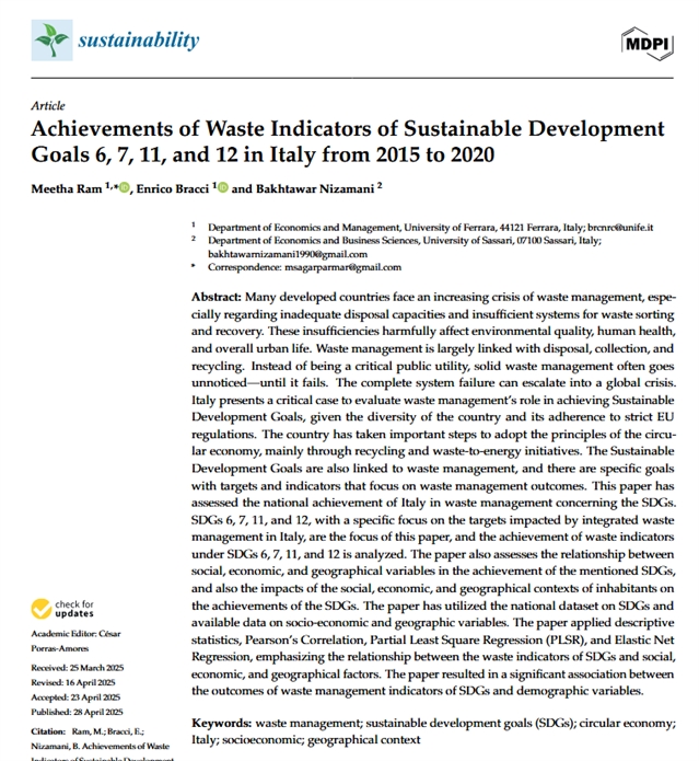 本文评估了意大利在可持续发展目标框架下废物管理的国家层面进展,探讨了社会、经济与地理因素对上述目标达成度的作用机制。
