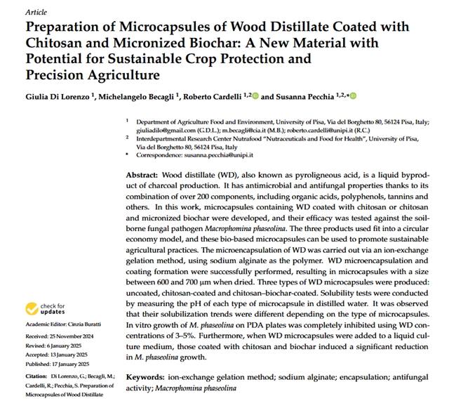 用壳聚糖和微米化生物炭包覆木醋液的微胶囊制备:一种具有可持续作物保护和精准农业潜力的新材料