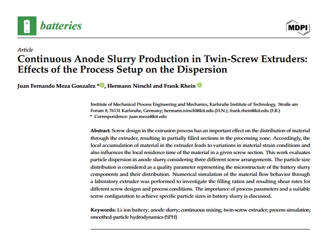 文章指出,后续研究应致力于缩小剪切速率分布与实验观察到颗粒尺寸分布变化之间的差距。总体平衡方程为将所展示的 SPH 模拟结果(过程条件)与所需浆料质量(颗粒分散)耦合提供了有前景的方式。这种多尺度方法将形成一个端到端建模框架,用于模拟电池应用中的双螺杆挤出机浆液分散。