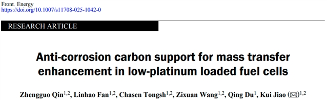 Zhengguo Qin, Linhao Fan, Chasen Tongsh, Zixuan Wang, Qing Du, Kui Jiao. Anti-corrosion carbon support for mass transfer enhancement in low-platinum loaded fuel cells. Front. Energy DOI:10.1007/s11708-025-1042-0