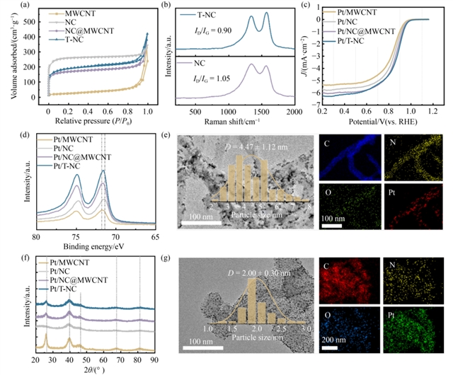 图1 Pt/T-NC的结构表征及其在低铂负载燃料电池中的应用