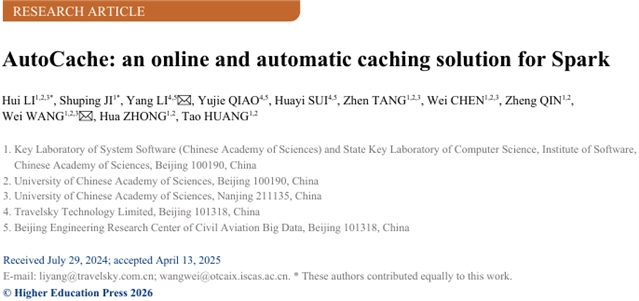 Hui LI, Shuping JI, Yang LI, Yujie QIAO, Huayi SUI, Zhen TANG, Wei CHEN, Zheng QIN, Wei WANG, Hua ZHONG, Tao HUANG. AutoCache: an online and automatic caching solution for Spark. Front. Comput. Sci., 2026, 20(5): 2005108