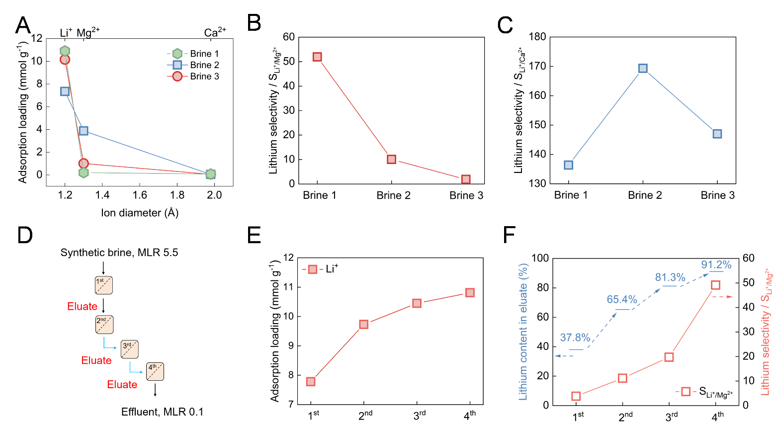 作为21世纪的核心能源金属,新能源产业的爆发式增长引发了锂需求的激增,使其可持续供应面临严峻考验。虽然吸附法凭借低压力、低能耗及易集成等优势,在盐湖直接提锂(DLE)技术中脱颖而出,但传统吸附剂的再生涉及强酸、强碱或盐溶液的使用,增加了环境负担。与此同时,盐湖中锂镁离子理化性质高度相似,也给其绿色高效分离带来了巨大挑战。现有无机吸附剂受限于动力学缓慢且环境友好性不足,因此,迫切需要研发兼具快速动力学、高锂镁选择性及绿色再生特性的新型吸附材料。