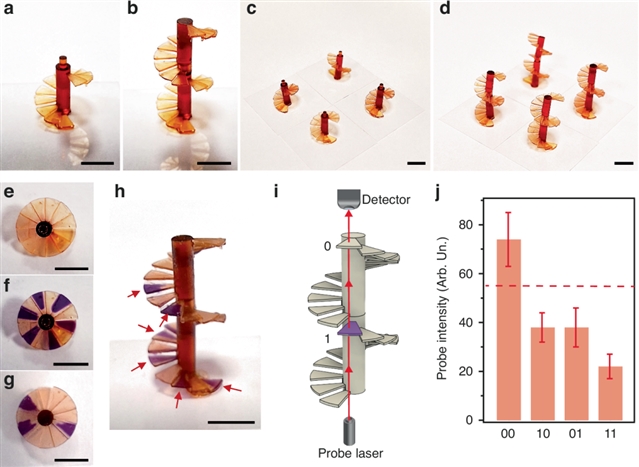 图5:垂直堆叠3D打印光致变色处理器的并行运算架构