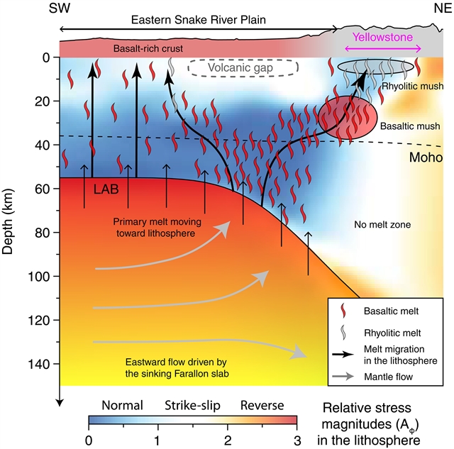 黄石地区以其由软流圈熔体补充的地壳岩浆储库而广为人知。然而,原生熔体如何穿越刚性的岩石圈并演化为双峰式火山活动,至今尚不明确。