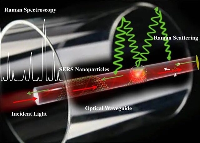 传统SERS技术依赖贵金属纳米结构的局域表面等离子体共振(LSPR)效应增强拉曼信号,但其检测性能受限于激发与收集效率不匹配、样品处理复杂等问题。光波导凭借机械柔性、抗电磁干扰、光场约束能力强等优势,与SERS技术形成完美互补,通过波导介导的光-物质相互作用,实现了analyte高效激发与散射信号强化收集的双重提升。