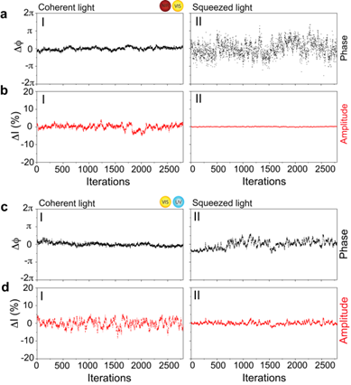 图2:超快压缩光的相位和强度不确定性测量。
