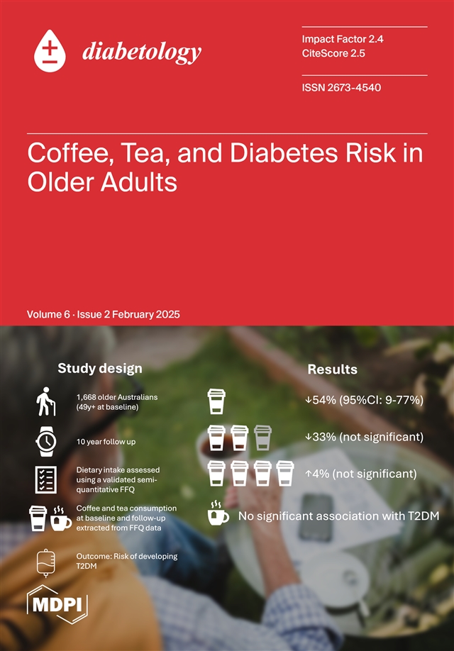 MDPI 引用格式:Wong, T.H.T.; Burlutsky, G.; Gopinath, B.; Flood, V.M.; Mitchell, P.; Louie, J.C.Y. Coffee and Tea Consumption and Risk of Type 2 Diabetes in Older Australians. Diabetology 2025, 6, 12.