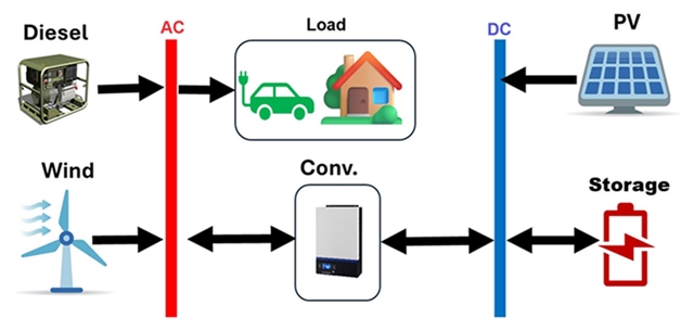(2)研究采用HOMER Energy软件进行详细建模与仿真,并对太阳辐照度、风速和柴油价格进行了敏感性分析。结果表明,最优配置仅由光伏和电池储能组成,可满足100%的年用电需求,且平准化度电成本(LCOE)仅为0.563美元/千瓦时,具有竞争力,同时实现温室气体零排放。太阳能光伏贡献了总发电量的99%以上,而风力发电和柴油发电在最优条件下未被启用。此外,该系统产生高达63.7%的富余电力,可用于社区应用,如抽水、公共照明或未来系统扩容。