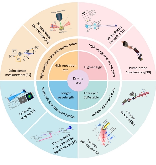 图1:阿秒脉冲应用与驱动激光参数之间的关系