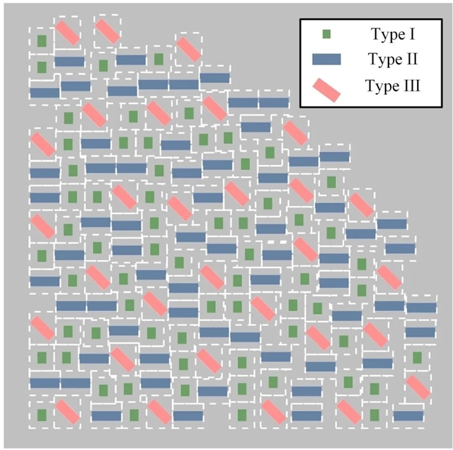 基于广义晶格策略,研究团队首次引入“数量比”作为设计自由度,构建了一种“短程有序、长程无序”的无序超表面结构(图2)。在整个超表面中,两种不同形状的纳米结构以固定数量比均匀分布。在任意“局部晶格”中,数量比保持不变,从而使整体传输矩阵可简化为加权平均的Jones矩阵之和。这一设计突破了传统周期性超表面的局限性,“无序性”则有助于削弱高阶衍射。