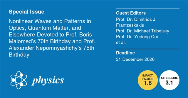 Physics:光学、量子物质及其他领域中的非线性波与模式——谨献给Boris Malomed教授70岁生日与Alexander Nepomnyashchy教授75岁生日 I MDPI特刊征稿