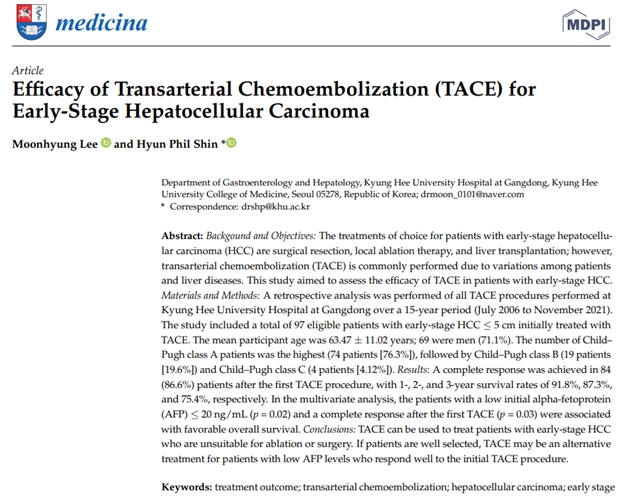 该研究通过回顾性分析韩国江东庆熙大学医院15 年间97 例接受经肝动脉化疗栓塞术的早期肝细胞癌患者,证实经肝动脉化疗栓塞术可作为治疗早期肝细胞癌患者的替代方案。
