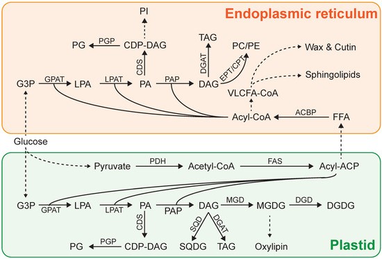 (1) 总结了真核微藻的商业脂质产物,并揭示了微藻脂质合成机制;