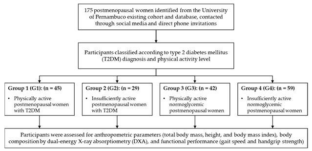 Vasconcelos, A.R.d.; Guimarães, F.J.d.S.P.; Cruz, P.W.d.S.; Carvalho, M.J.M.C.B.d.; Brito, A.d.F.; Costa, K.B.; Figueiredo, L.S.; Schwingel, P.A.; Vancea, D.M.M.; Costa, M.d.C. Sarcopenia and Functional Decline in Postmenopausal Women: The Roles of Type 2 Diabetes and Physical Activity. Med. Sci. 2025, 13, 268. http://www.mdpi.com/2076-3271/13/4/268