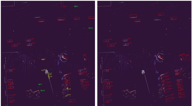 基于加拿大不利驾驶条件数据集的三维目标检测定性结果