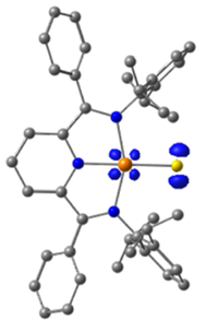 图5. 暂定HAA中间体Ir–S•自由基的自旋密度分布,由DFT计算得到(等值面值 = 0.02 e−/Å3