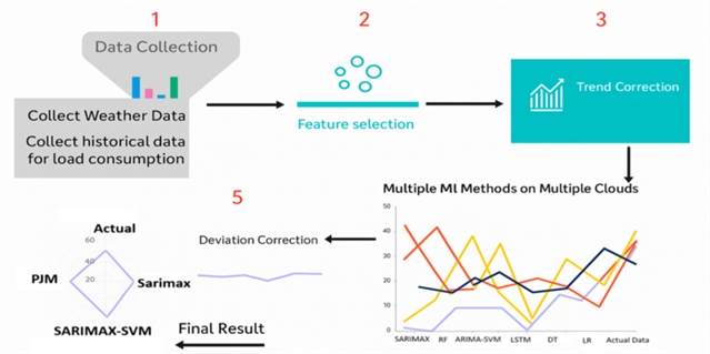 针对这些问题,本研究提出一种融合特征选择、趋势修正与多云协同的并行多模型预测框架,系统对比深度学习模型LSTM、传统统计模型SARIMAX与混合模型SARIMAX+SVM在偏差修正前后的表现,并引入"三取二"云投票机制提升系统容错能力,旨在为电网负荷预测突破单一模型性能瓶颈、化解单点故障、模型失效等云环境部署风险提供可行的路径。