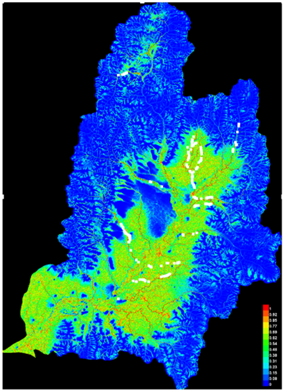 研究明确指出,激光雷达衍生的高分辨率地形数据是精准预测河狸筑坝分布的“利器”。模型不仅精准识别了现有河狸坝的分布规律,更成功预测了上游尚无河狸坝但具备高度适宜条件的“热点区域”。这些区域是河狸未来扩张的潜在方向,也为主动管理提供了预警。