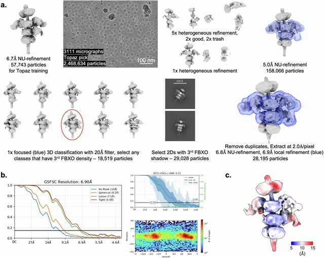 本研究发现E3连接酶SKP1-CUL1-F-box (SCF)复合物含有F-box其他蛋白42 (FBXO42,也称为JFK;以下简称SCFFBXO42)在与螺旋状蛋白CCDC6的复合物中降解无全酶PP2Ac,以维持癌细胞的适应性。FBXO42 - CCDC6 - PP2Ac组装体的低温电镜结构揭示了假对称结构,其中CCDC6形成中心二聚体模板,招募PP2Ac的多个拷贝并为FBXO42创建底物。CCDC6-PP2Ac异源二聚体的四元结构和PP2Ac翻译后甲基化的尾部都被FBXO42识别为泛素化。CCDC6促进的多价结构使多个降解复合物沿着单个线圈组装,导致游离磷酸酶的周转和催化活性的下调。总之,他们的发现定义了一种通过泛素-蛋白体系统控制PP2A的机制,并建立了cullin-RING连接酶-底物相互作用的范例。