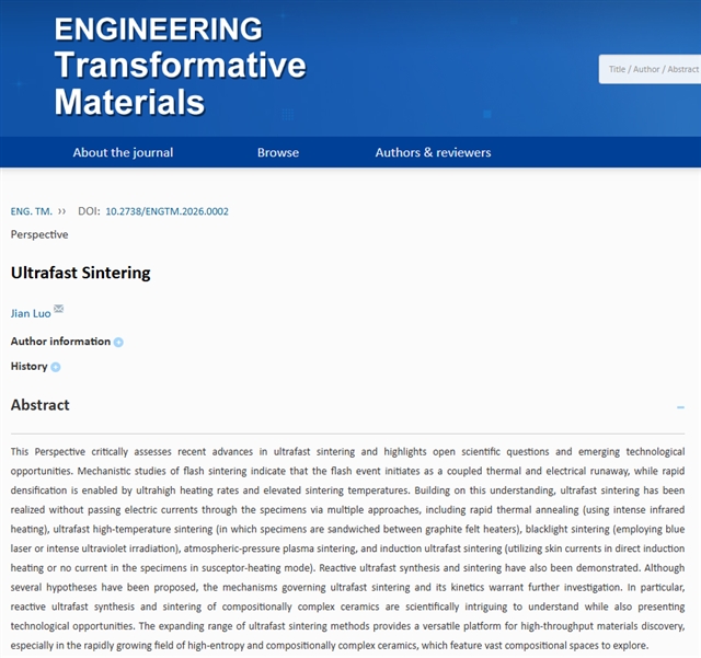 2.Jian Luo, Ultrafast Sintering, ENG. Transform. Mater., DOI:10.2738/ENGTM.2026.0002