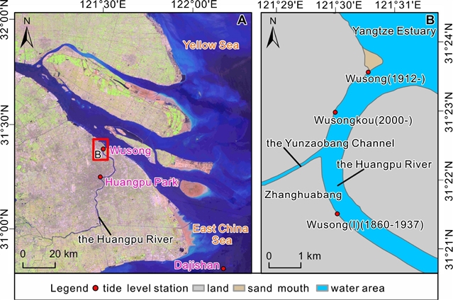 Abstract: Long-term tidal records are essential for understanding sea-level changes and managing coastal flood risk. While most studies focused on the recent four decades, centennial-scale analyses remain limited. In this contribution, we assemble and reconstruct tidal height data at the Wusong gauge in the Yangtze Estuary between 1912 and 2024, based on the correction of land subsidence and datum change. Data analyses indicate that land subsidence is the primary cause of data discrepancy, with a cumulative subsidence up to approximately 1.28m. The mean sea level rise rate is 1.89mma1 for 1912–2024 and increased to 2.16mma1 for 1972–2024, suggesting accelerated sea level rise. This rate is lower than that at the offshore gauge Dajishan, suggesting a damped rising rate within the estuary due to river discharge and tidal oscillations. In addition, the annually maximum tide levels rise at a rate of 7.62mma1 since 1963, three times larger than the rate of mean sea level rise, implying escalating extreme water levels and subsequent flood risks. These results provide a reference for studies of centennial sea level changes in China, and have implications for flood risk management in the Huangpu River and construction of a tidal barrier at Wusong.