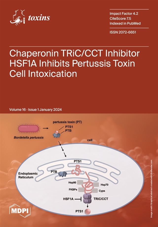 Jia, J.; Zoeschg, M.; Barth, H.; Pulliainen, A.T.; Ernst, K. The Chaperonin TRiC/CCT Inhibitor HSF1A Protects Cells from Intoxication with Pertussis Toxin. Toxins 2024, 16, 36. https://doi.org/10.3390/toxins16010036