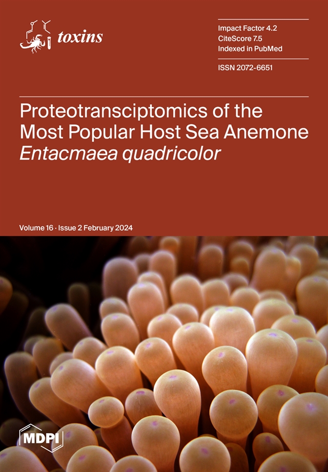 Hoepner, C.M.; Stewart, Z.K.; Qiao, R.; Fobert, E.K.; Prentis, P.J.; Colella, A.; Chataway, T.; Burke da Silva, K.; Abbott, C.A. Proteotransciptomics of the Most Popular Host Sea Anemone Entacmaea quadricolor Reveals Not All Toxin Genes Expressed by Tentacles Are Recruited into Its Venom Arsenal. Toxins 2024, 16, 85. https://doi.org/10.3390/toxins16020085