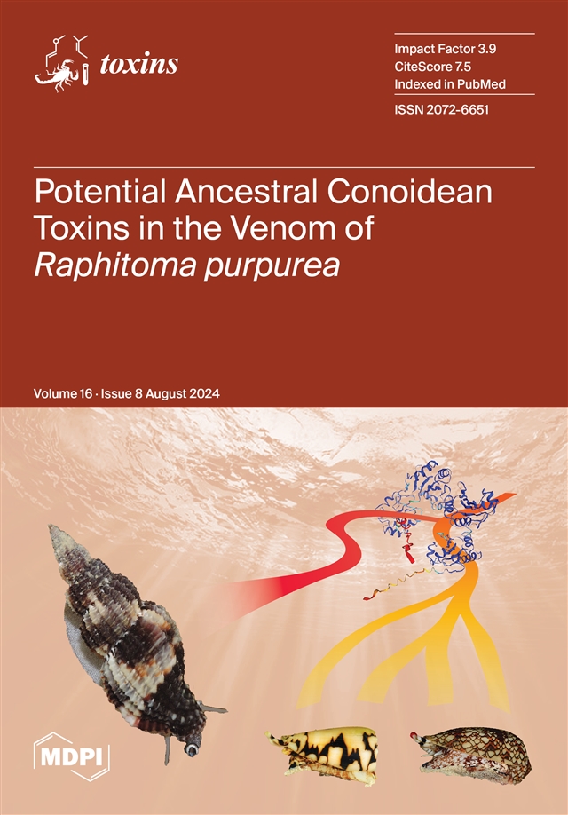 Chiappa, G.; Fassio, G.; Modica, M.V.; Oliverio, M. Potential Ancestral Conoidean Toxins in the Venom Cocktail of the Carnivorous Snail Raphitoma purpurea (Montagu, 1803) (Neogastropoda: Raphitomidae). Toxins 2024, 16, 348. https://doi.org/10.3390/toxins16080348