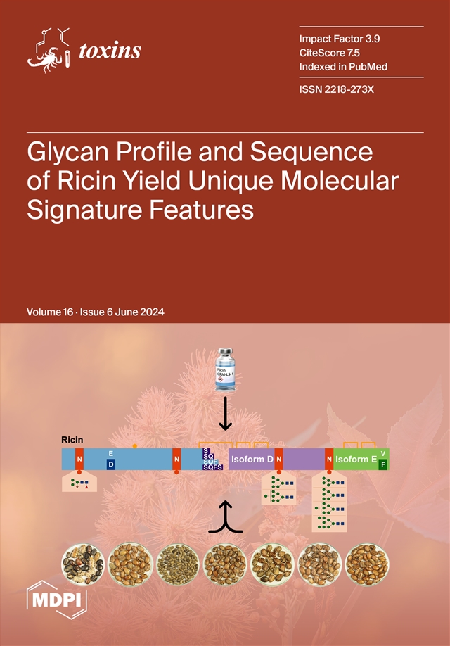 Josuran, R.; Wenger, A.; Müller, C.; Kampa, B.; Worbs, S.; Dorner, B.G.; Gerber, S. Glycan Profile and Sequence Variants of Certified Ricin Reference Material and Other Ricin Samples Yield Unique Molecular Signature Features. Toxins 2024, 16, 243. https://doi.org/10.3390/toxins16060243