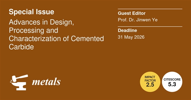 Metals:硬质合金的设计、加工和表征进展 | MDPI特刊征稿 |