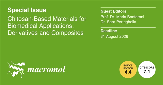 Macromol 期刊推出特刊“Chitosan-Based Materials for Biomedical Applications: Derivatives and Composites(壳聚糖基生物医用材料:衍生物与复合物)”,旨在汇集关于壳聚糖创新衍生物及复合物的高质量研究论文与综述文章,重点聚焦其参与生物活性的相关特性,助力深化对这类多功能材料生物学行为的认知,进一步拓展其在生物医学领域的应用潜力,本特刊研究方向与期刊关注的生物高分子材料结构、功能及生物应用研究领域高度契合。