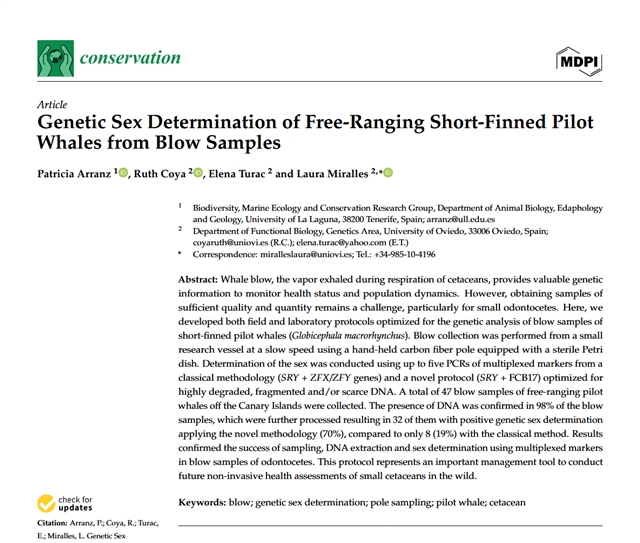 利用喷气样本进行野生短鳍领航鲸的基因性别鉴定