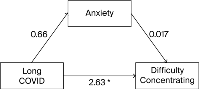 图2 焦虑是否在Long COVID和注意力难以集中之间起到了中介作用?