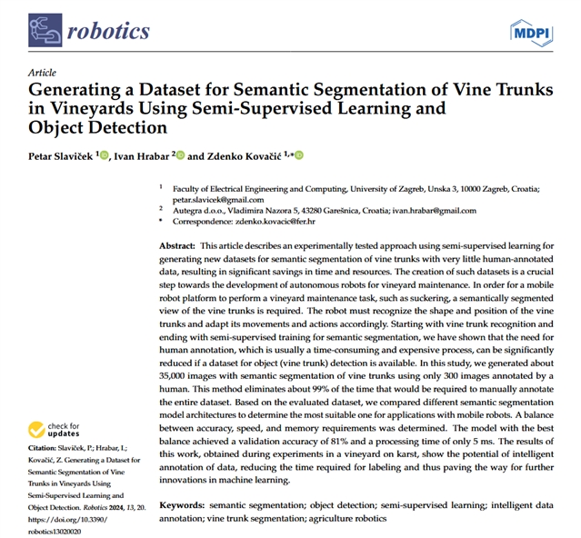 本文介绍了一种经过实验验证的半监督学习方法,用于生成葡萄树树干语义分割的新数据集。