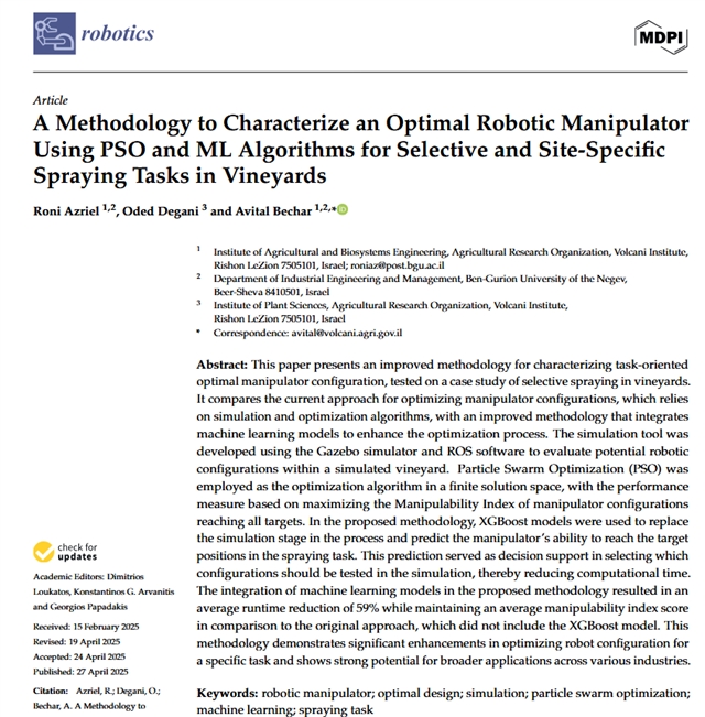 利用粒子群优化算法和机器学习来确定适用于葡萄园中选择性及针对特定区域喷洒任务的最优机械臂方法