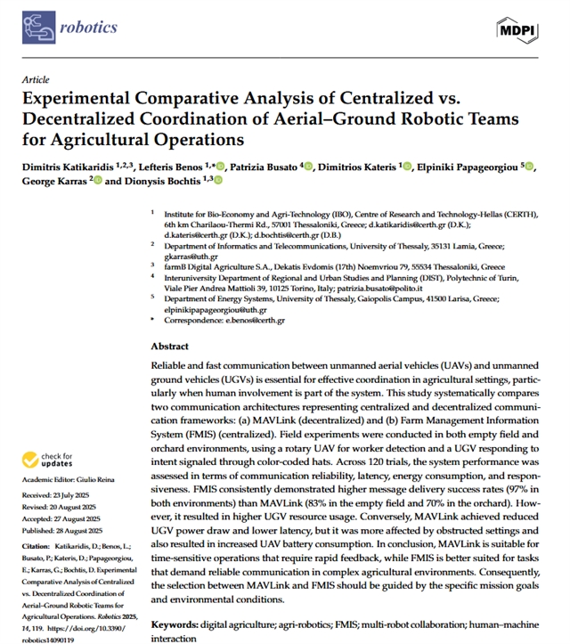农业作业中空-地机器人团队集中式与分散式协作的实验对比分析