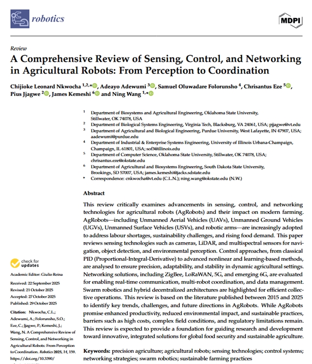 本综述对农业机器人(AgRobots)在传感、控制和网络技术方面的发展进行了深入分析,并探讨了这些技术对现代农业的影响。