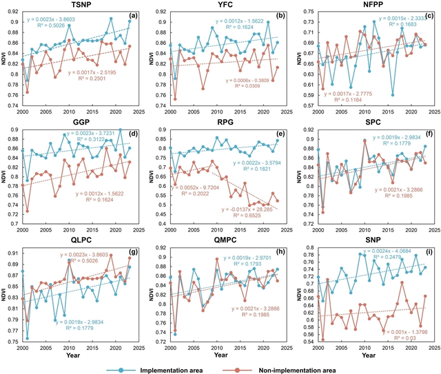 整体上全部生态保护政策都是有效的。其中三北防护林、长江防护林、天然林保护工程及国家公园等政策,有效提升了区域植被覆盖度,并增强了生态系统稳定性。退耕还林工程促进植被恢复效率增加,退牧还草工程有效缓解了畜牧业对生态环境的压力。