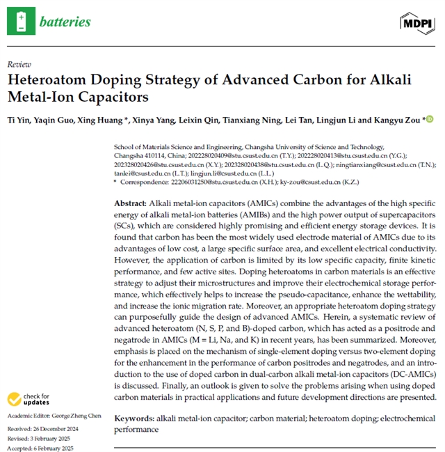 用于碱金属离子电容器的先进碳材料异质原子掺杂策略