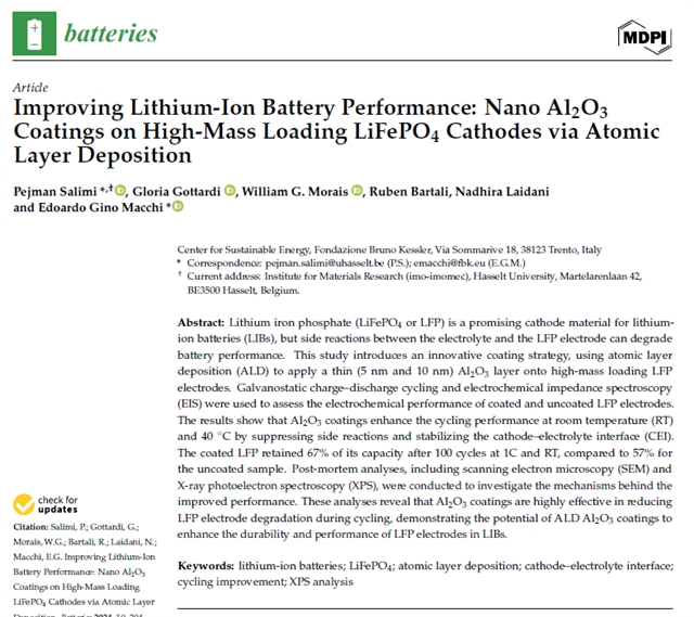 提高锂离子电池性能:高质量负载LiFePO4阴极原子层沉积纳米Al2O3涂层