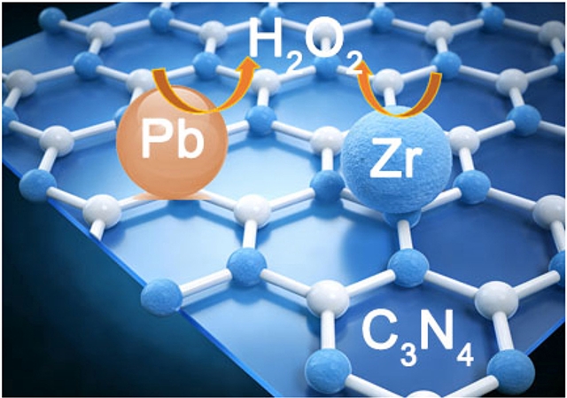 研究组提出一种基于混合焓的双原子光催化剂设计策略。在该理念指导下,成功在氮化碳(C3N4)载体上获得了PbZr双原子体系。该催化剂在光催化产过氧化氢(H2O2)中表现出卓越性能,产率高达69 mmol/g,是纯C3N4的2.7倍,并超越了相应的单原子光催化剂Pb-C3N4(37.1 mmol/g)和Zr-C3N4(41.1 mmol/g)。
