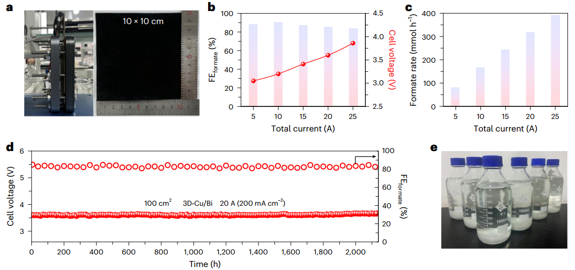 图5:在100 cm2的MEA电解槽中的扩展演示。