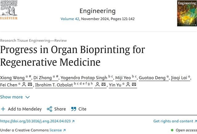 Xiang Wang, Di Zhang, Yogendra Pratap Singh, Miji Yeo, Guotao Deng, Jiaqi Lai, Fei Chen, Ibrahim T. Ozbolat, Yin Yu. Progress in Organ Bioprinting for Regenerative Medicine. Engineering, 2024, 42(11): 129-152