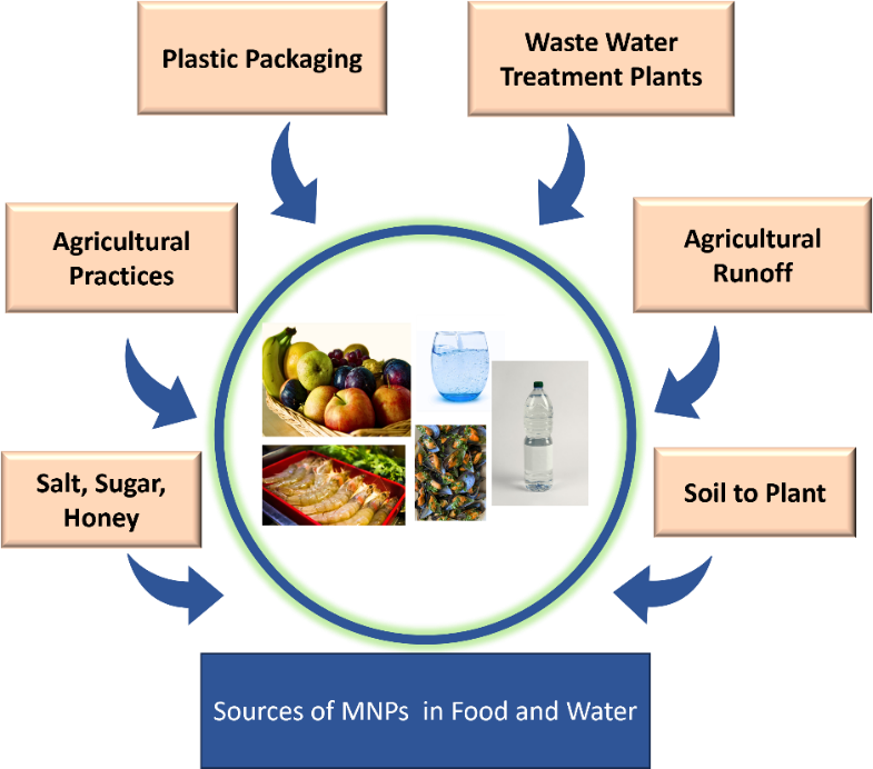 合成塑料因成本与用途优势被广泛应用,但其难降解特性使环境中的塑料逐步破碎为更小颗粒,包括微塑料(<5 mm)与纳米塑料(<1 µm;且纳米塑料也可小于100 nm,至少一维满足)。研究显示,微/纳米塑料可通过陆源与水体输入、城市径流、大气沉降等途径进入生态系统,并进一步污染饮用水与多类食品(如海产品、盐、糖、蜂蜜及多种农作物),与食物链、空气和水环境产生持续交互。同时,微/纳米塑料的毒性受粒径、形状、表面电荷、官能团、暴露时间及聚合物类型等多因素影响,可能对水生生物、人类与植物造成多系统影响。本文作为综述,研究目的在于系统梳理食物与水体中微/纳米塑料的来源、潜在毒性效应,并归纳现有修复策略的进展与挑战,为更高效、可持续、可规模化的治理方案提供参考。