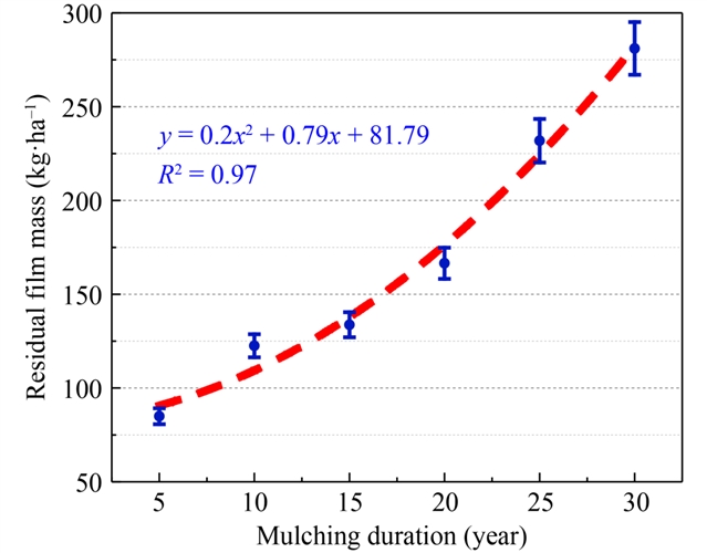 Shufeng ZHANG, Xiaoqing LIAN, Xiao YANG, Yachuan ZHAO, Can HU, Haichun ZHANG, Xufeng WANG. Dynamics of residual film mass and microplastic abundance in long-term plastic-mulched cotton fields. Front. Agr. Sci. Eng., 2026, 13(1): 25627 DOI:10.15302/J-FASE-2025627